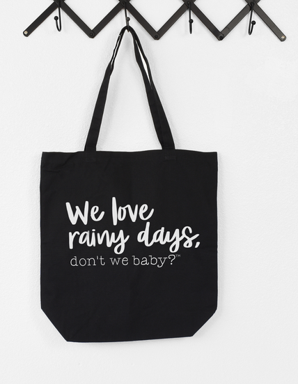 We love rainy days, don’t we baby?® Canvas Tote Bag